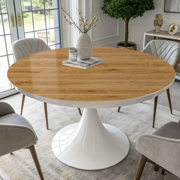 כיסוי שולחן דמוי עץ אגוז זהוב. גוון חום-דבש חמים עם טקסטורה טבעית ועשירה של סיבי עץ אמיתיים. המראה החי והאלגנטי מוסיף חמימות וסטייל לכל חלל. מפינת אוכל ועד למשרד מעוצב.