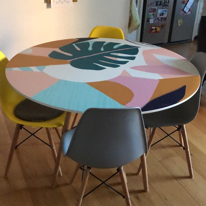 מפת שולחן בעיצוב טרופי של עלים קאריבים צבעוניים.