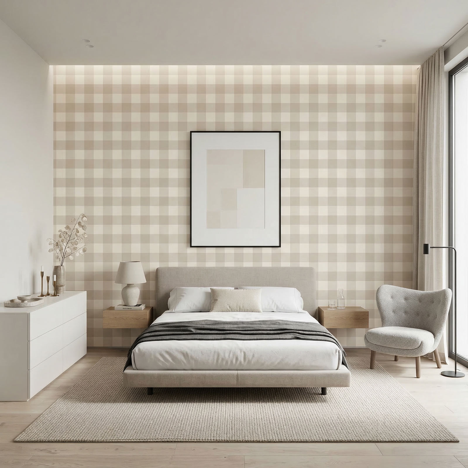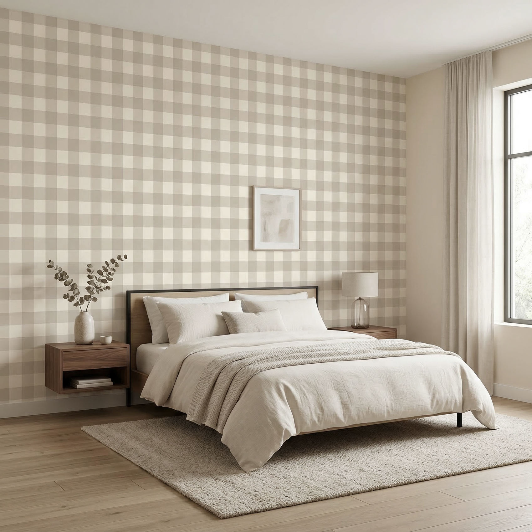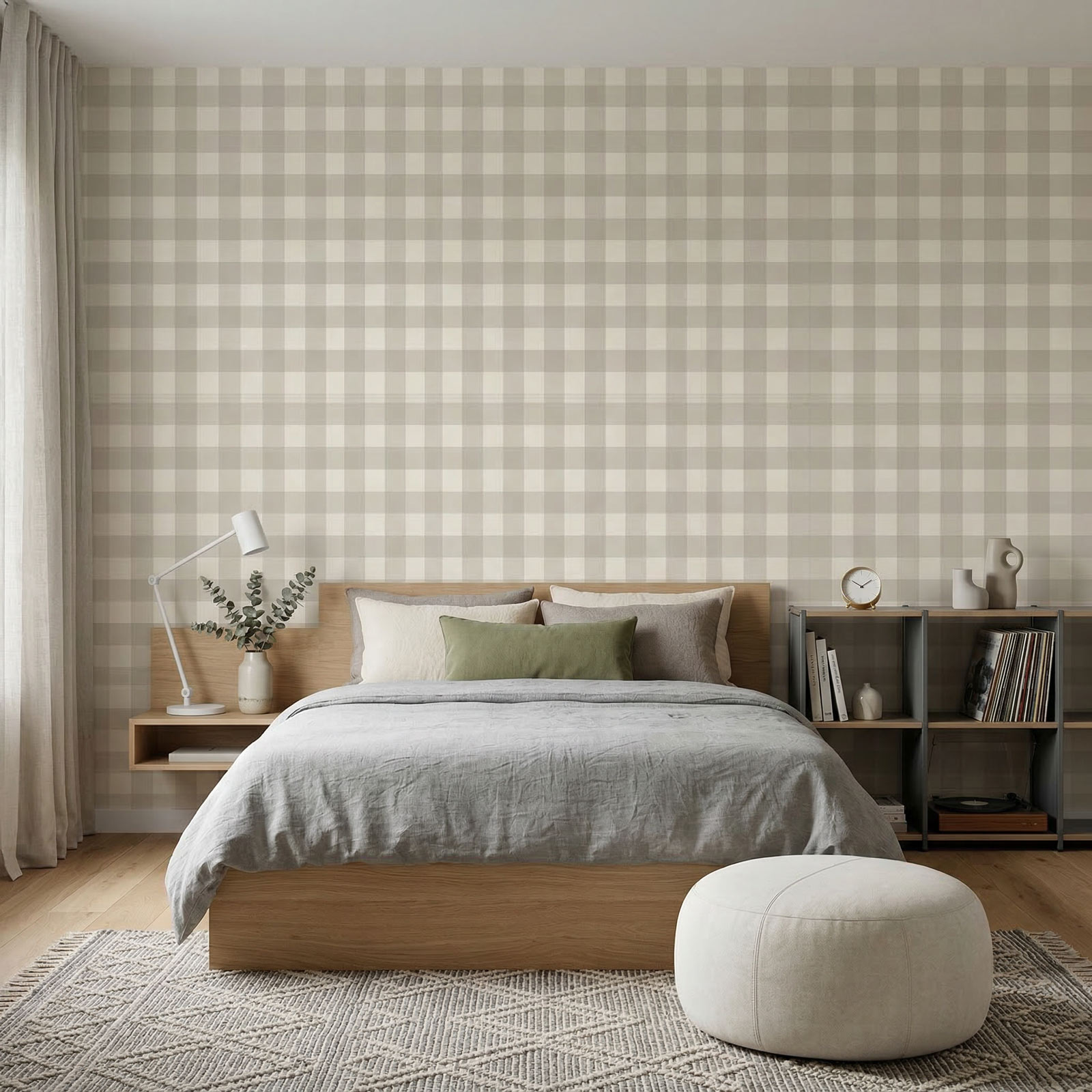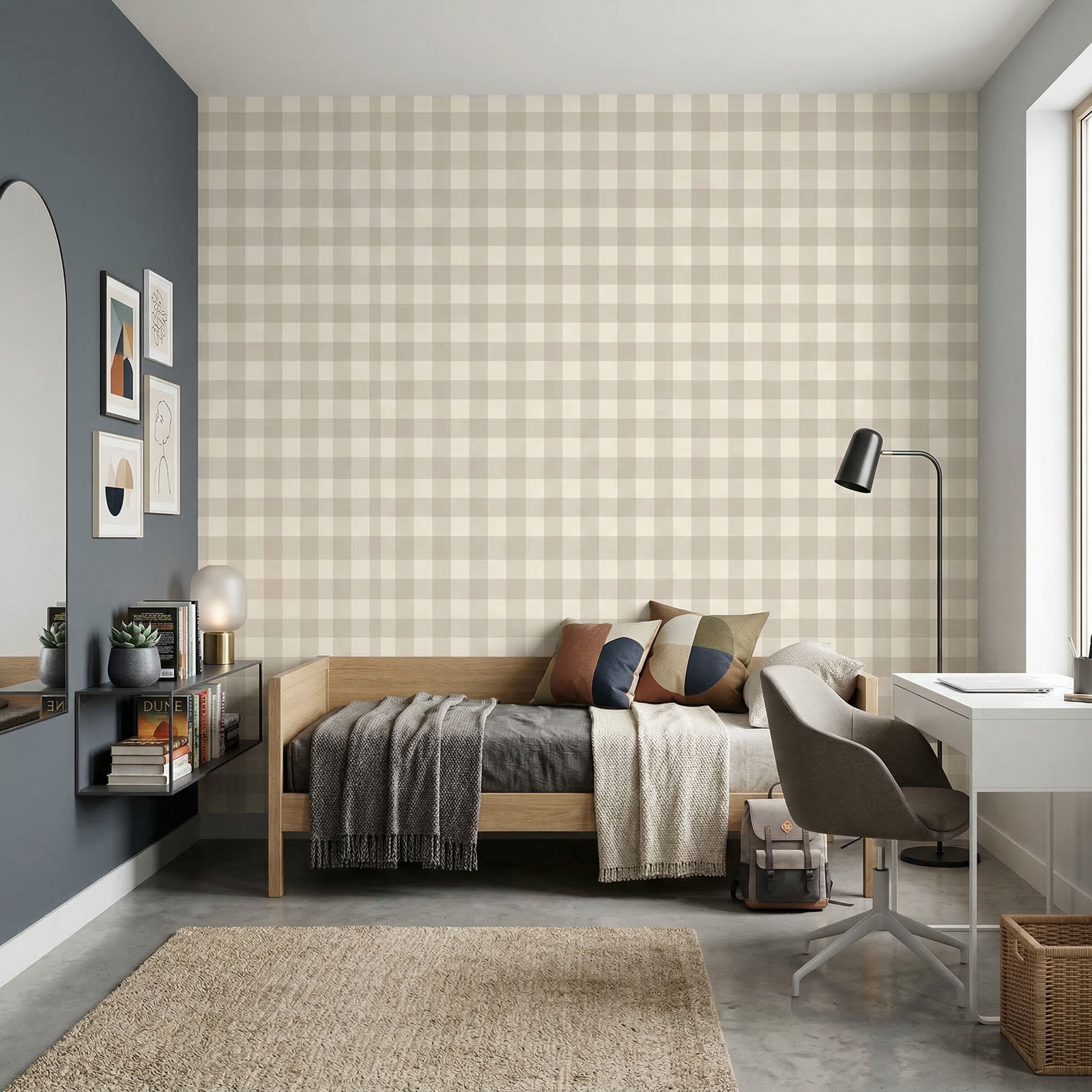 טפט מעוצב בדוגמת משבצות עדינה בגווני בז׳, שמנת ואבן, היוצר מראה רך, נקי ועל זמני. העיצוב הקלאסי עם הפרשנות המודרנית משתלב נהדר בחדרי שינה, חדרי ילדים, פינות עבודה וחללים בסגנון סקנדינבי,