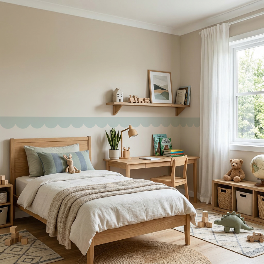 מדבקת בורדר קשתות בצבע תכלת מעושן, בעיצוב נקי, רך ומודרני, שמתאימה במיוחד לעיצוב חדרי ילדים, חדרי תינוקות, פינת משחקים וחללים בסגנון נורדי רגוע.