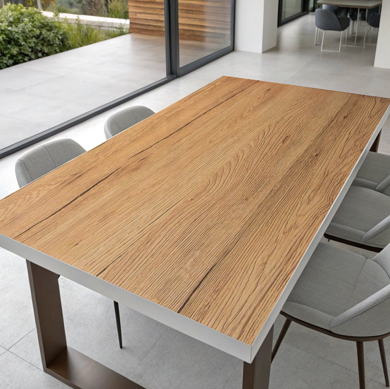 כיסוי שולחן דמוי עץ בגוון אורן טבעי עתיק. טקסטורה עשירה עם נימים עמוקים ומראה של עץ אמיתי. הגוון החמים והחי יוצר תחושת טבעיות, רוגע וחמימות נעימה בכל חלל.