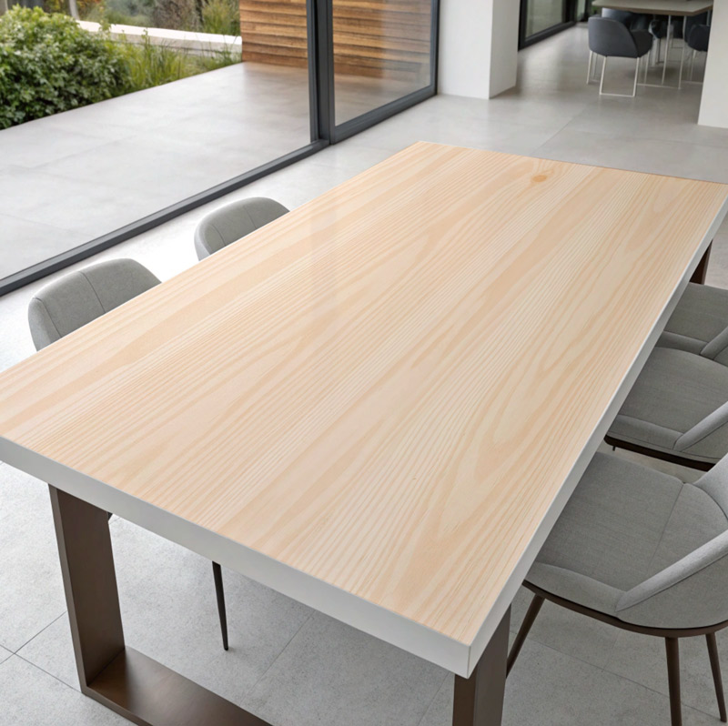 כיסוי שולחן דמוי עץ בגוון וניל בהיר. מראה נקי, טבעי ורך עם טקסטורה עדינה של עץ אמיתי. הגוון הבהיר מעניק תחושת אור ומרחב ומכניס אווירה רגועה ואלגנטית לכל חלל.