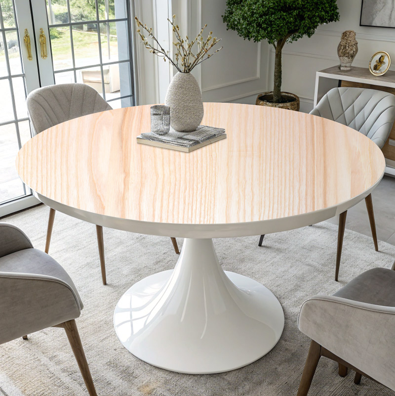 כיסוי שולחן דמוי עץ נורדי בהיר. עיצוב עדין, טבעי ומואר בגוון עץ בהיר עם טקסטורה רכה ונקייה. מעניק לחלל תחושת שלווה, מינימליזם ואור סקנדינבי אמיתי.