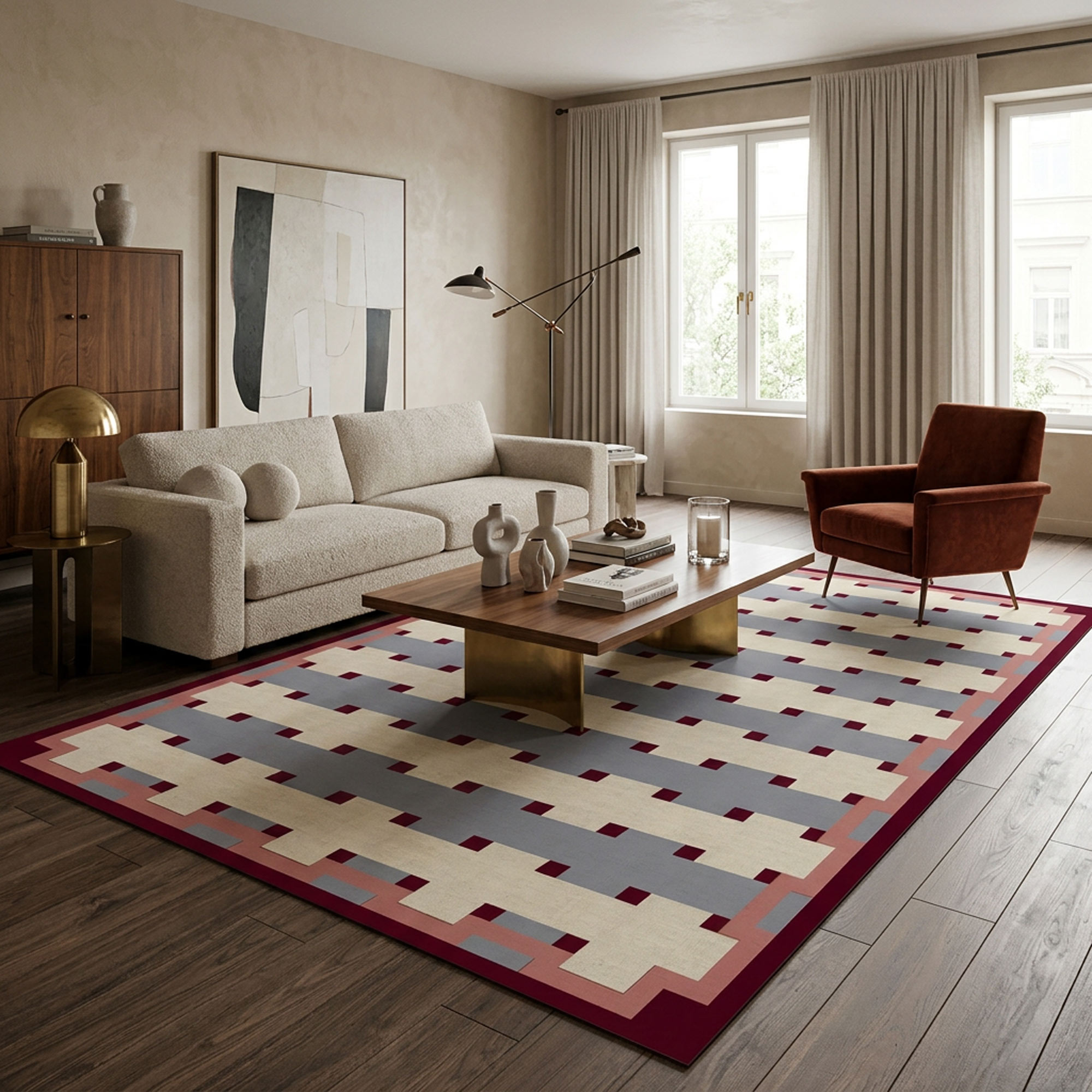 ומתאים לחללים שרוצים בהם טאץ' עיצובי נקי עם עניין ויזואלי. זהו שטיח מושלם לסלון, חדר שינה, משרד, פינת אוכל או חדר ילדים מעוצב,