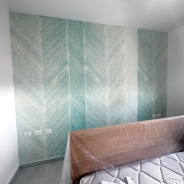 טפט בעיצוב של שברונים בגוונים ירוקים מנטה בסגנון צבעי מים.
