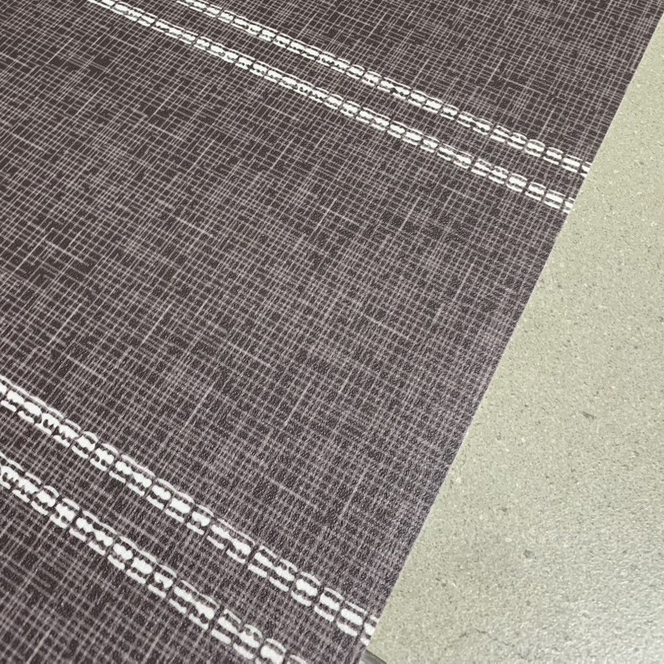 שטיח למטבח בעיצוב מודרני ונקי בגוון חום עם טקסטורה קווית ברקע ופסים בסגנון תפרים בצבע לבן.