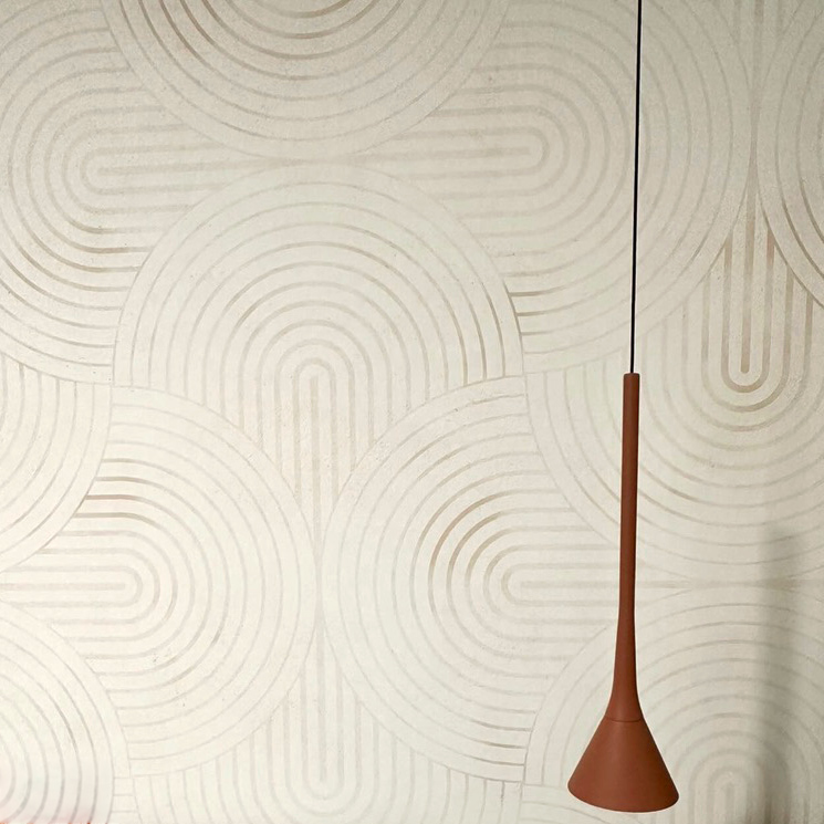 טפט בעיצוב מטריף של קשתות משתלבות אחת בשנייה בגווני לבן שבור וחום בהיר.